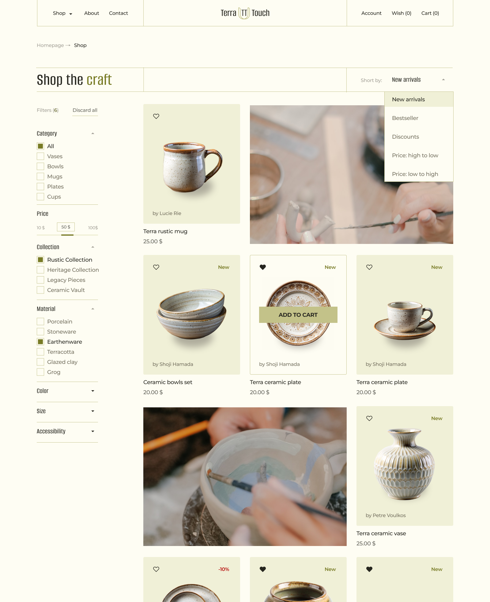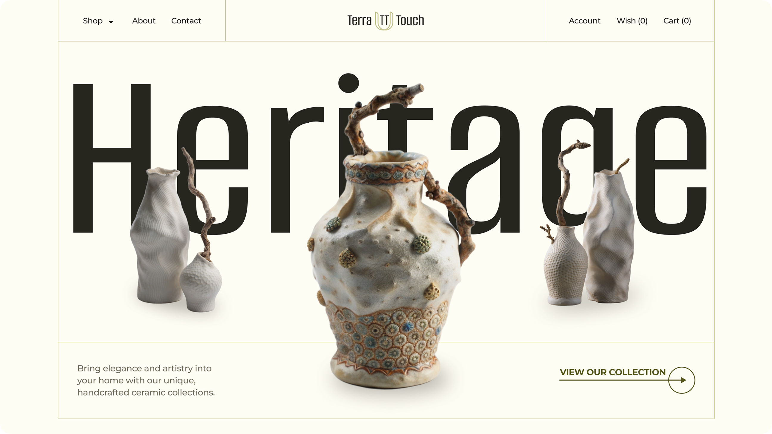 I designed an e-commerce website concept for Terra Touch, focused on ceramic home décor. The project features a minimalist layout, earthy tones, and smooth navigation to highlight handcrafted products and enhance the shopping experience.
