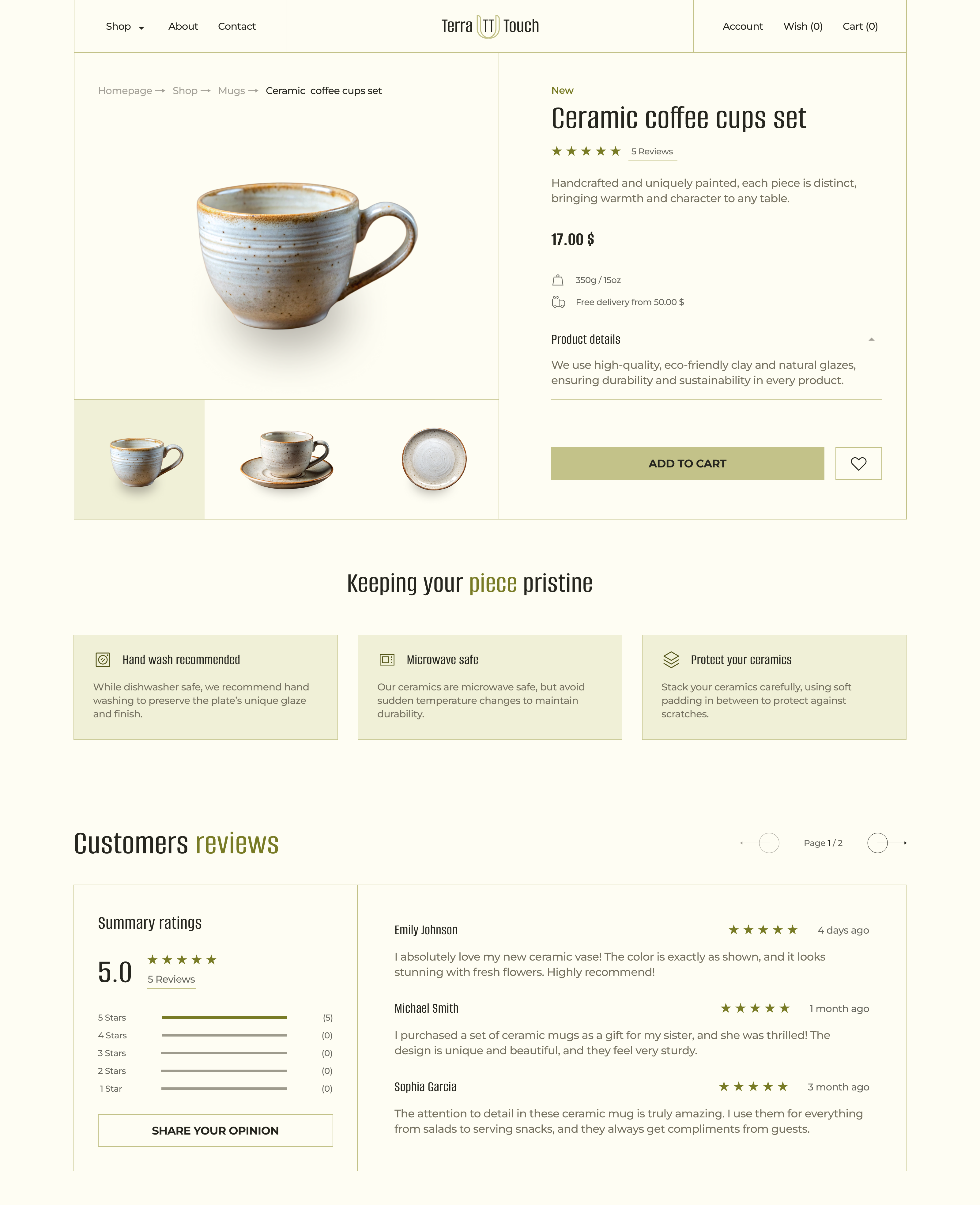 The design enhances usability through clean layouts, intuitive structure, and a calm visual language. Terra Touch delivers a seamless shopping experience that encourages product exploration and reflects the brand’s natural, grounded identity.