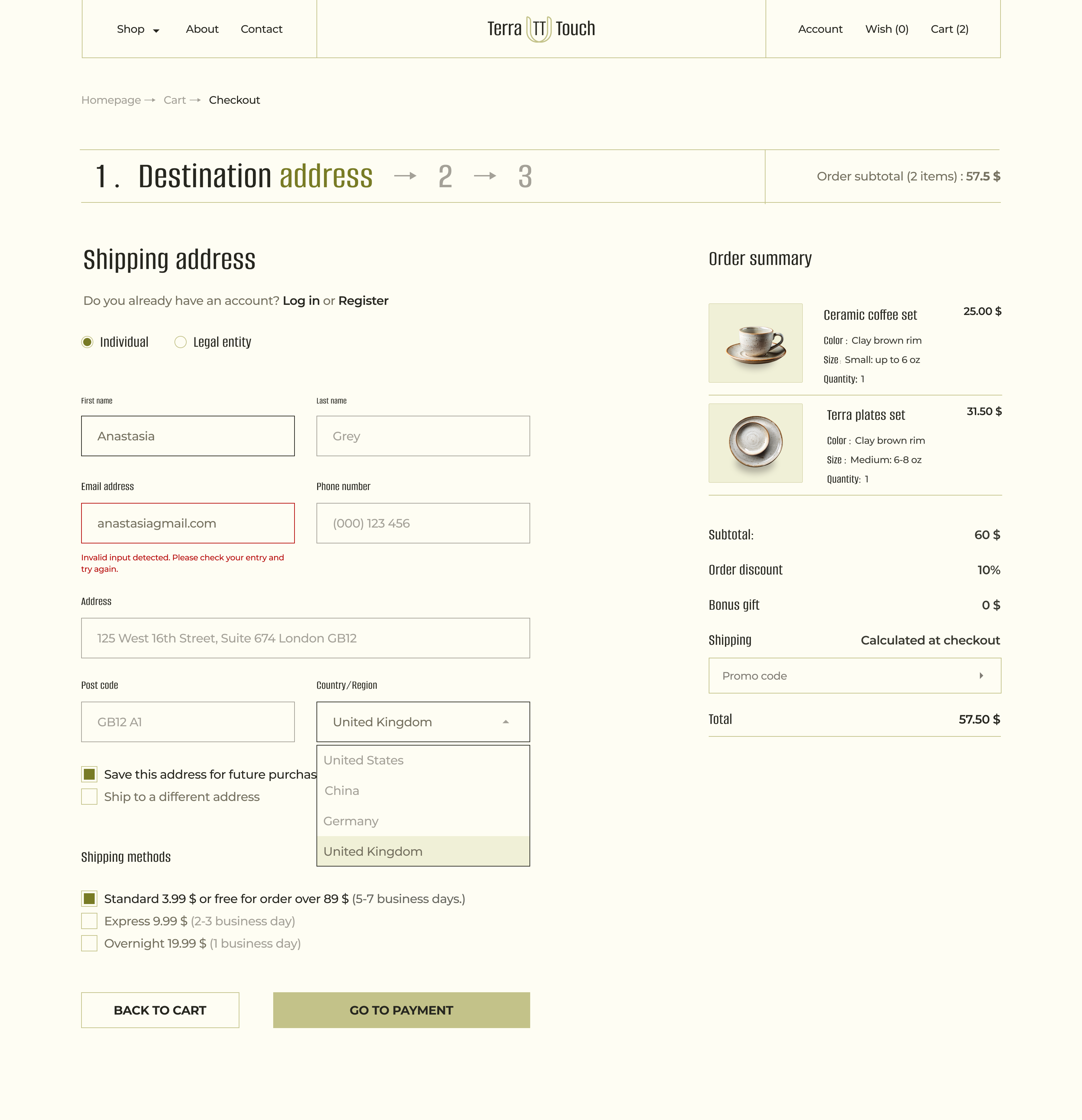 Terra Touch is a personal e-commerce concept designed for a home & living brand. The goal was to explore a clean, minimal interface that blends earthy tones with intuitive navigation, creating a calm and natural feel throughout the user journey.